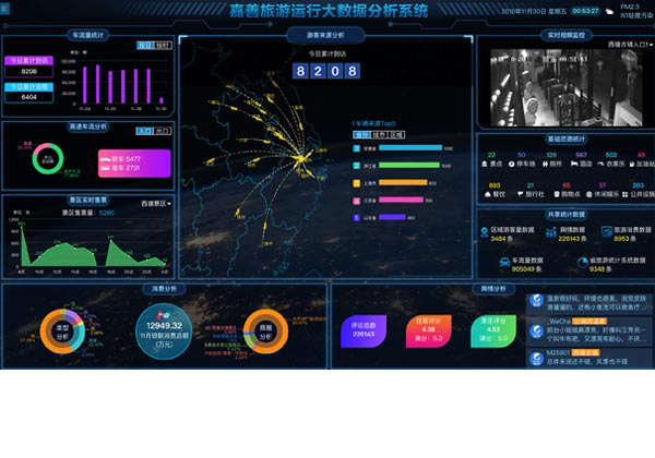 平台实现了全域旅游市场的高效管理、精准营销及优质服务,为旅游管理者、旅游从业企业/人员、游客等提供旅游产业管理、生态资源配置、企业经营策略、营销活动策划、应急指挥、游客出行规划等提供科学的支持。同时通过综合管控平台将旅游企业、相关机构、从业人员、游客等所有旅游行业资源基于地理信息数据进行一张图管理,实现对嘉善所有信息点位的可视化管理。